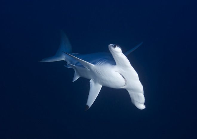 As it turned out, this has its advantages. Calculations using simple hydrodynamic equations to describe the thrust, buoyancy, lift and resistance experienced by the fish in the course of movement have revealed that due to the turn on the side and the large dorsal fin, the surface area creating the buoyancy force increases. As a result, the creation of the necessary lifting force requires a lower speed and, accordingly, less effort. Thus, the hammerhead shark saves energy on maintaining buoyancy and more easily withstands long trips.