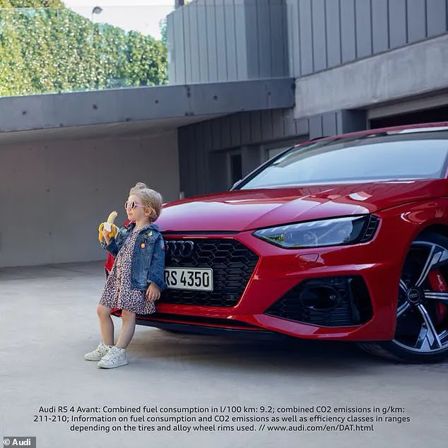 Audi has removed an advert that showed a very young girl in a leopard-print skirt leaning against the grille of a red Audi RS4 while eating a banana in a manner many people have described as “provocative.”
